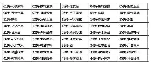 注:尼斯分类是根据《商标注册用商品和服务国际分类尼斯协定》制定的商标类目分类表。尼斯分类每年修订一次,《类似商品和服务区分表》随之予以调整。