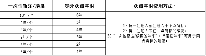 3.使用“获赠年限”新注/续展任一点商标,其年费价格不得高于获取赠送年限的相关点商标的年费价格。